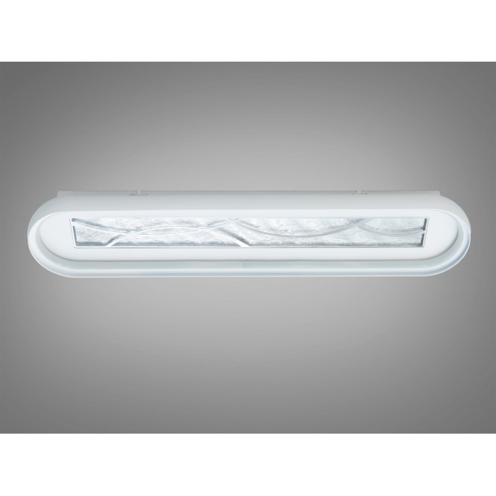 Світильник має компактний низькопрофільний корпус білого кольору, який акуратно поєднується з різними оздоблювальними матеріалами. Розсіювач формує рівномірний світловий потік без жорстких контрастів, а декоративний візерунок на лицьовій частині додає світлу виразності та допомагає інтегрувати плафон у сучасні інтер’єри.