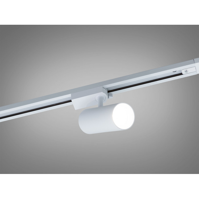 Білий металевий корпус із стійким покриттям поєднується з більшістю світлих стель і стін. Лінійна геометрія та матовий дифузор формують зрозумілу, охайну світлову лінію без яскравих «гарячих точок». Конструкція передбачає надійне кріплення у трек і зручне обслуговування.