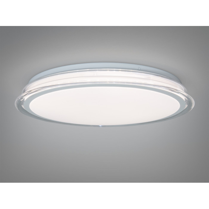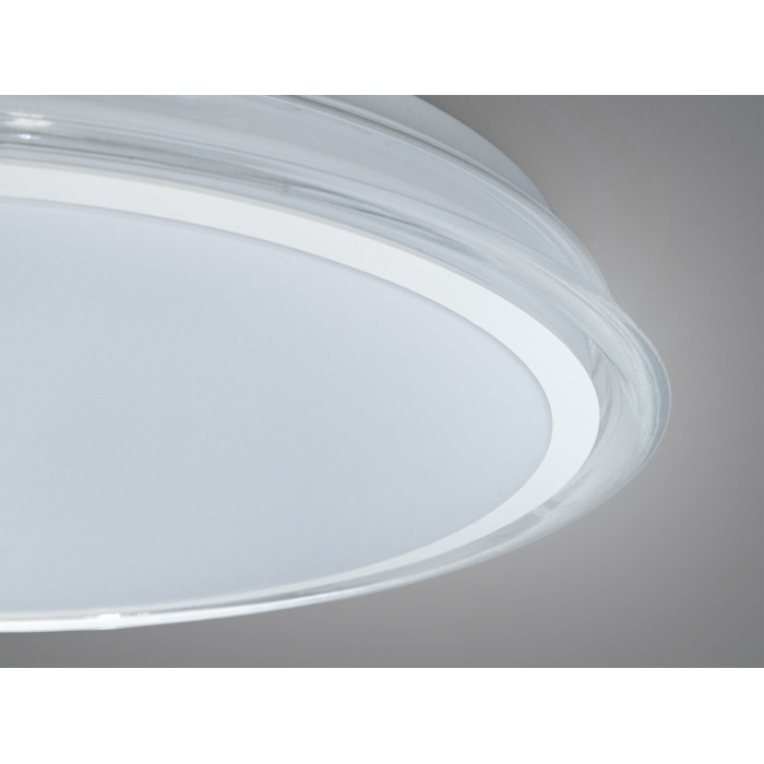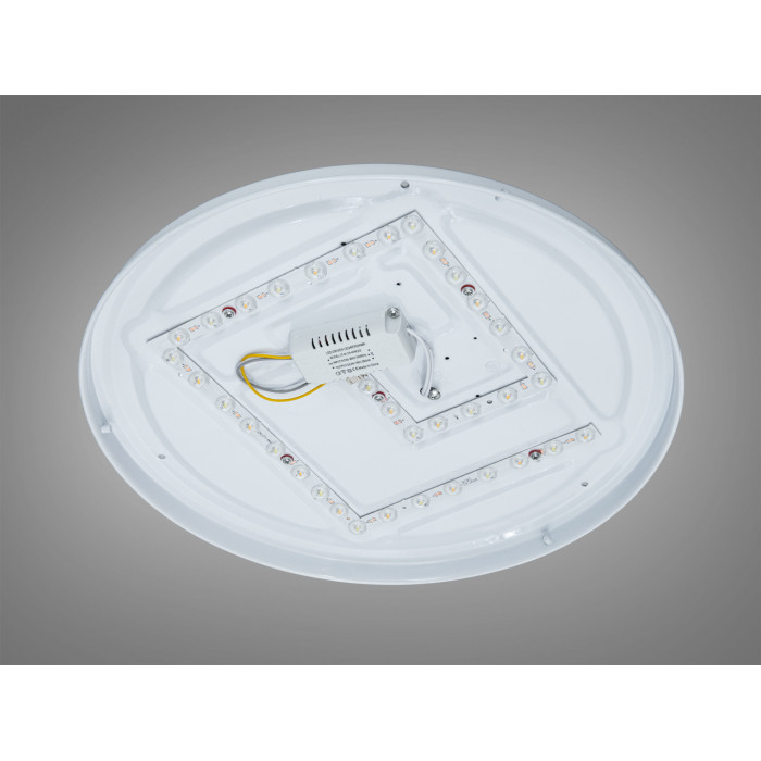 Кругла стельова люстра-панель Diasha у білому кольорі створює рівномірне м’яке освітлення та економно споживає електроенергію завдяки вбудованим світлодіодам. Потужність 34 Вт зазвичай достатня для невеликих приміщень площею до 6 м². Модель монтується накладним способом, керується звичайним настінним вимикачем і постачається без пульта, що спрощує використання та знижує вартість володіння.