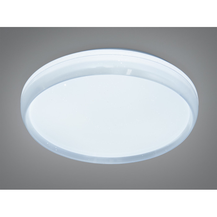 Кругла стельова люстра-панель Diasha у білому кольорі створює рівномірне м’яке освітлення та економно споживає електроенергію завдяки вбудованим світлодіодам. Потужність 34 Вт зазвичай достатня для невеликих приміщень площею до 6 м². Модель монтується накладним способом, керується звичайним настінним вимикачем і постачається без пульта, що спрощує використання та знижує вартість володіння.