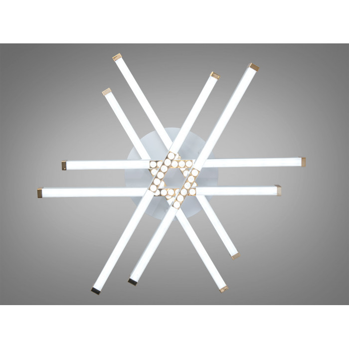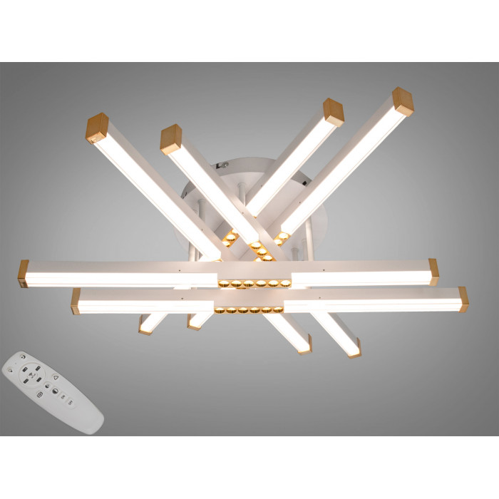 Люстра комплектується пультом дистанційного керування, що дозволяє регулювати яскравість у широких межах для різних сценаріїв: робоче освітлення, відпочинок, перегляд фільмів. Корпус виконано з металу з приємною матовою фактурою. Закритий розсіювач допомагає уникати різких тіней і робить світлову пляму більш рівною по всій кімнаті. Конструкція передбачає накладний монтаж на стелю і сумісність зі стандартним настінним вимикачем для ввімкнення/вимкнення.