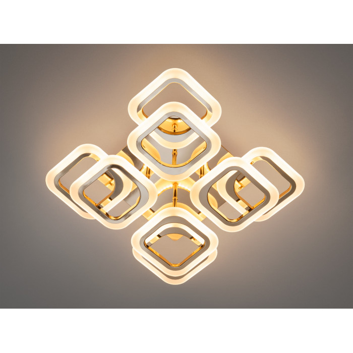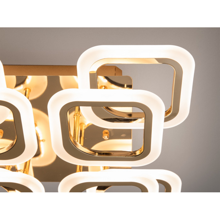 Люстра виконана у стильному золотому дизайні, що підкреслює сучасність та елегантність. Геометричні форми квадратних плафонів гармонійно впишуться в будь-який інтер′єр, від хай-теку до скандинавського стилю.