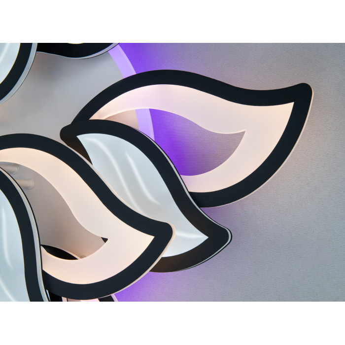 Ця стельова LED-люстра у формі пелюсток у чорному кольорі поєднує високу світлову продуктивність і зручне керування. Конфігурація 8 світлових модулів (6+2) створює рівномірне, мʼяке світло без різких тіней, а потужність 220 Вт припускає комфортне освітлення площі приблизно до 37 м² за умови стандартної висоти стелі. Комплектується пультом дистанційного керування для плавного димерування і перемикання між режимами білого світла. Підсвітка основи з триколірною зміною тону допомагає швидко налаштувати атмосферу — від теплого затишку до робочої нейтральності.