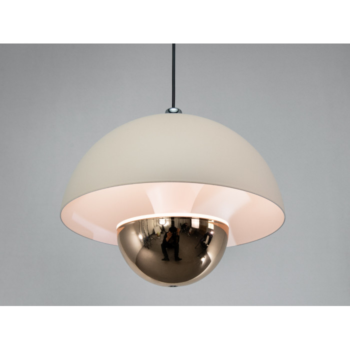 Металевий контур у золотому виконанні поєднаний із скляним плафоном, що додає прозорості та забезпечує рівномірніше розсіювання. Скло легко протирати м’якою сухою серветкою; для складніших ділянок підійде злегка зволожена тканина без абразивів. Такий набір матеріалів часто обирають у житлових та комерційних просторах, де важливі візуальна легкість і стабільна передача світла.