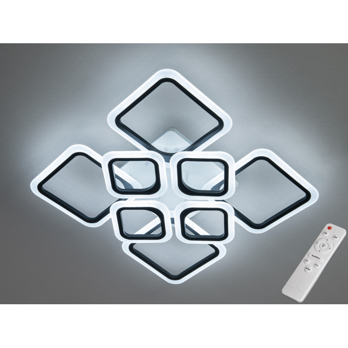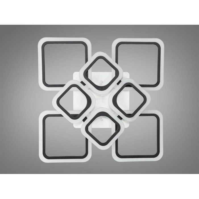Багатофункціональна стельова світлодіодна люстра на 105 Вт з інфрачервоним пультом керування є поєднанням елегантності, сучасного стилю та передових технологій. Виконана у білому кольорі, люстра чудово виглядає на будь-якій стелі, додаючи приміщенню легкості та вишуканості. Її геометричний дизайн складається з кількох квадратних рамок різних розмірів, які гармонійно поєднуються між собою, створюючи об'ємну, збалансовану композицію. Такий світильник ідеально підходить для сучасних інтер'єрів, додаючи їм стилю та структури.