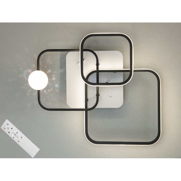 Світлодіодна люстра смарт світильник з пультом від ТМ "Діаша" зачаровує своїм мінімалістичним і водночас вишуканим дизайном. Її конструкція нагадує витвір сучасного мистецтва, де гармонійно переплітаються чіткі геометричні форми. Чорні металеві рамки зі стриманим акцентом білого створюють стильний контраст, що додає їй універсальності в будь-якому інтер'єрі. Плафони з акрилу делікатно розсіюють світло, створюючи м’яку та приємну атмосферу у приміщенні. Ця лед люстра гармонійно поєднує в собі модерний дизайн світильника та функціональність, що є важливою характеристикою для сучасних світлодіодних пристроїв.