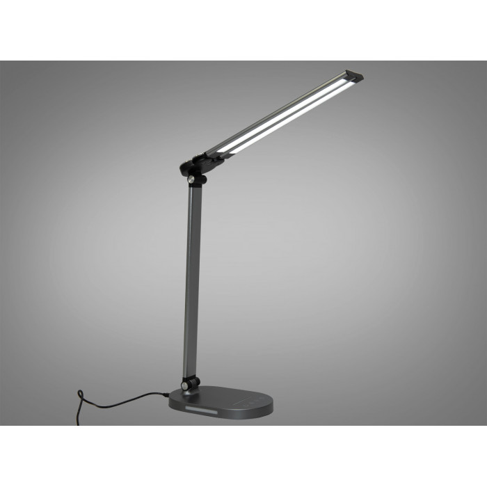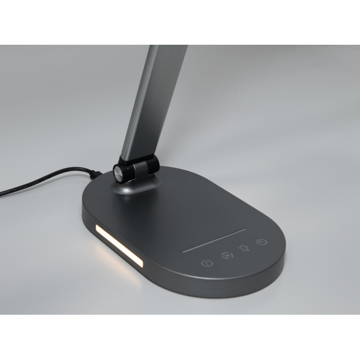 Ця світлодіодна настільна лампа поєднує сучасний стиль, технологічність і максимальну функціональність, забезпечуючи комфортне освітлення для роботи та навчання. Її корпус у відтінку хром сатин виглядає елегантно, гармонійно вписуючись у будь-який інтер’єр, від хай-тек до мінімалізму.