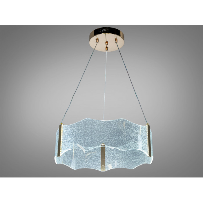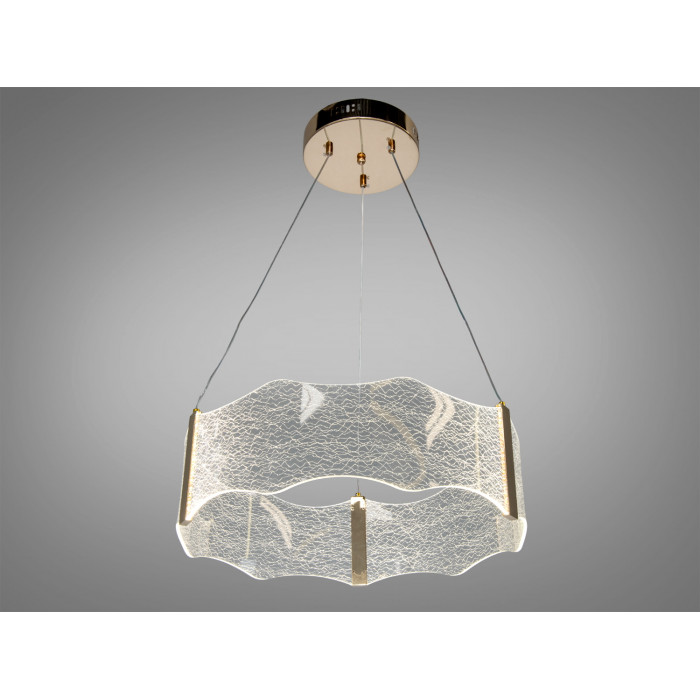 Конструкція орієнтована на щоденну експлуатацію: підвісна основа для стелі, світлодіодні елементи з довгим строком служби та стійке зовнішнє покриття в золотому кольорі. Поєднання матеріалів розроблене для збереження зовнішнього вигляду та стабільної роботи за умови коректного монтажу.