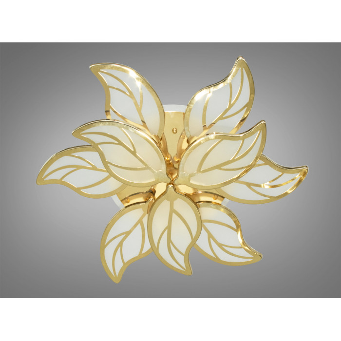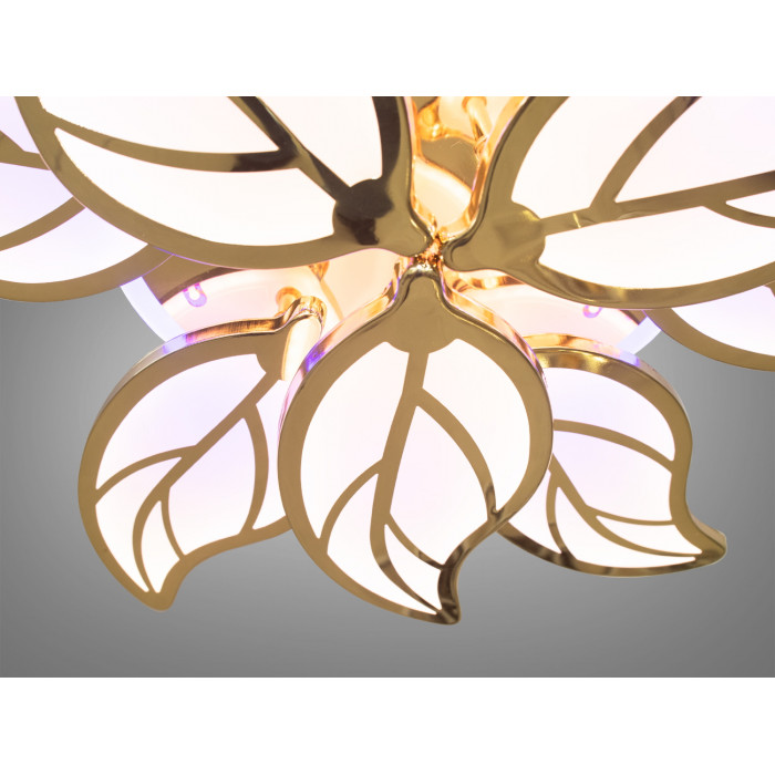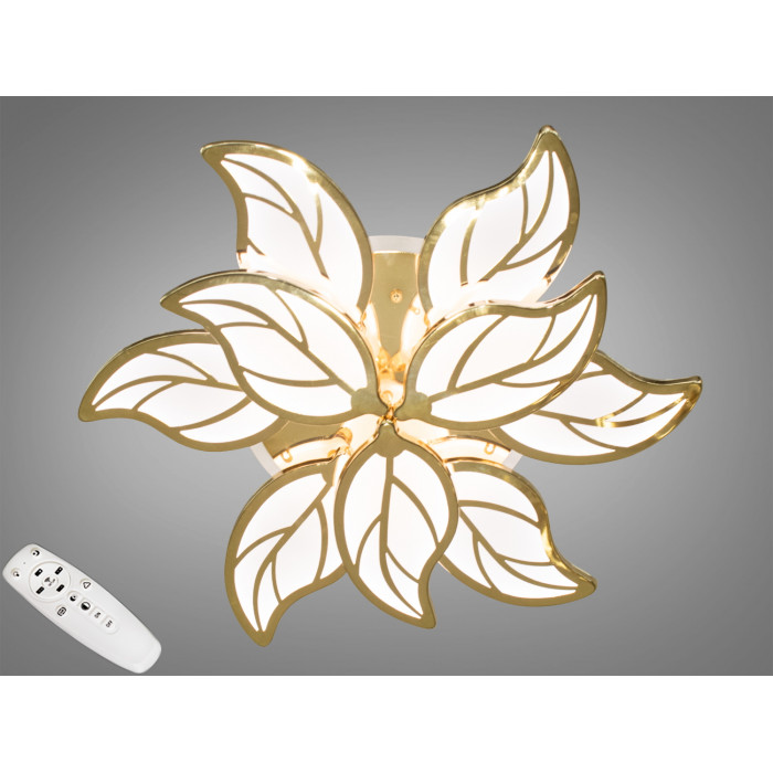 Ця стельова світлодіодна люстра виконана в золотому кольорі, що надає простору відчуття розкоші та благородства. Каркас виготовлений із міцного металу, що гарантує довговічність і надійність конструкції. Плафони виконані з акрилу, який відомий своєю здатністю рівномірно розсіювати світло, наповнюючи приміщення м'яким сяйвом без засліплення.