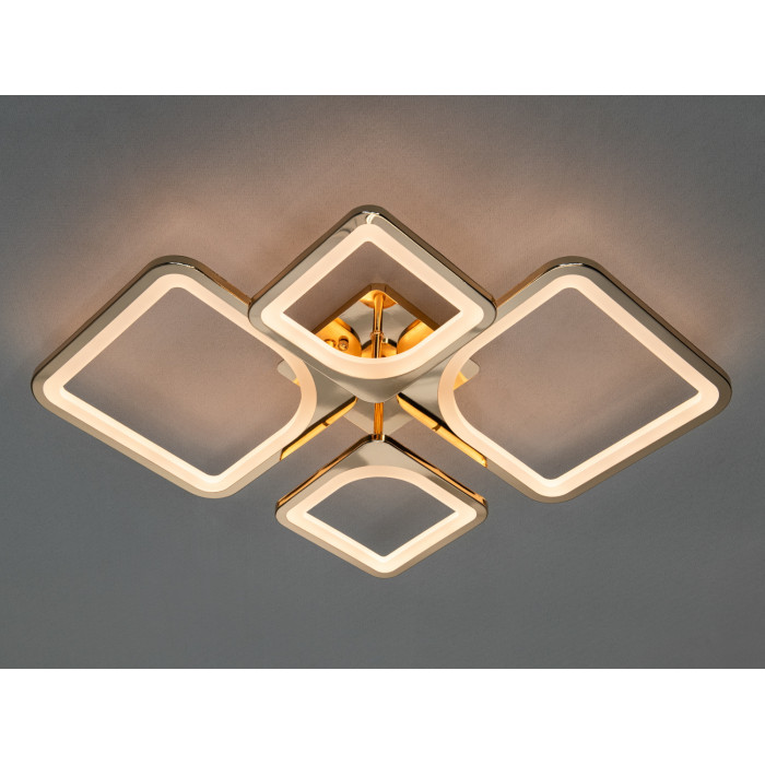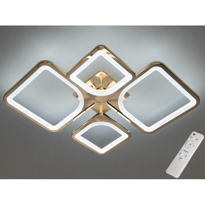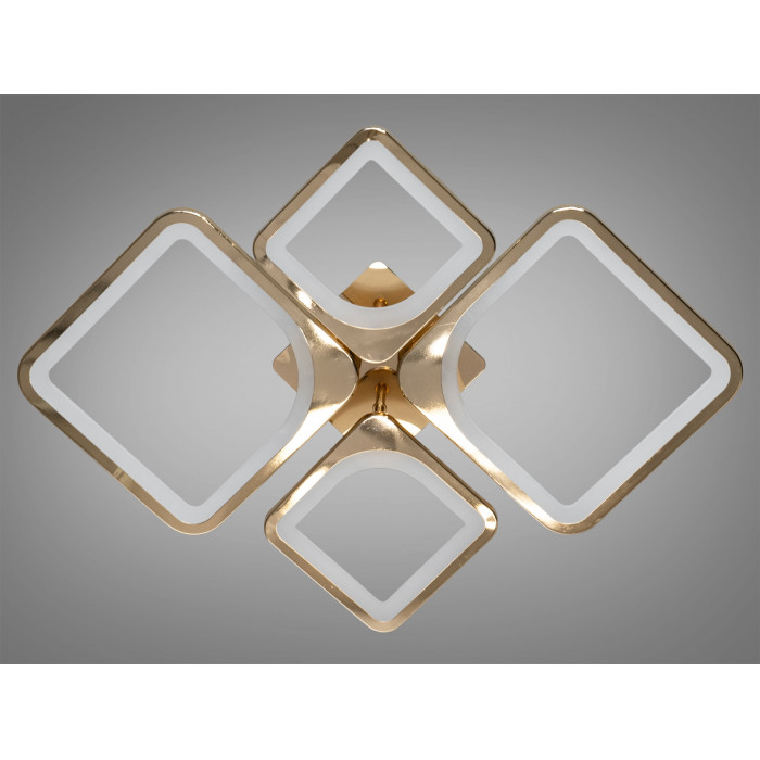 Ця стельова світлодіодна люстра вражає своїм золотим покриттям, яке створює враження тепла та розкоші. Каркас виготовлений з високоякісного металу, що забезпечує довговічність конструкції. Плафони виконані з акрилу, який відзначається міцністю та високою пропускною здатністю світла.