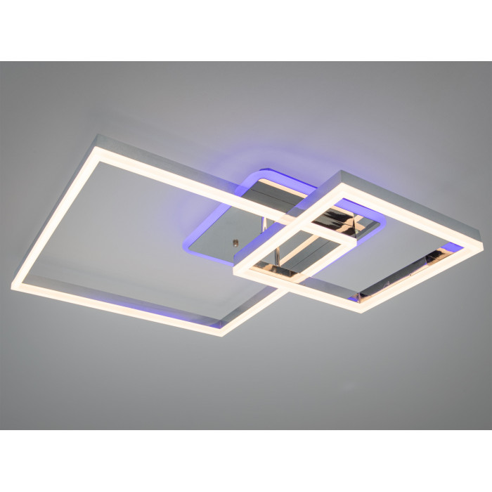 Світлодіодна стельова люстра у чорному виконанні з чотирма квадратними рамками поєднує геометричний дизайн і продуману функціональність. Модель орієнтована на комфорт щоденного користування: дистанційне керування, зміна колірної температури та димер дозволяють налаштовувати атмосферу під конкретну задачу — від робочої концентрації до вечірнього відпочинку.