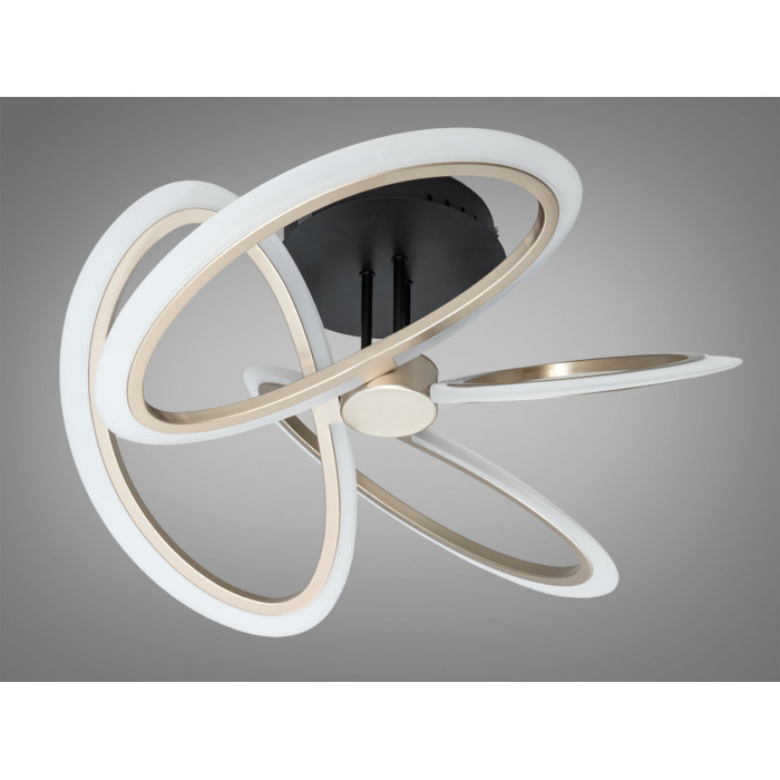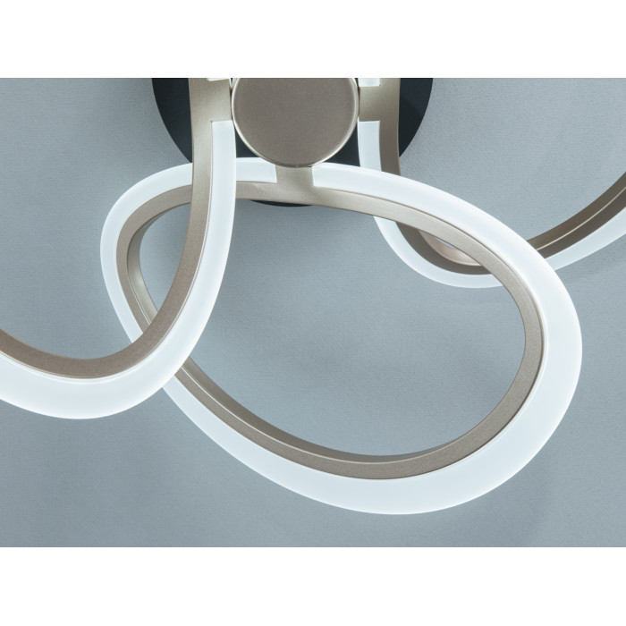 Diasha WG5144 — стельова LED-люстра потужністю 60W у трендовому відтінку шампань. Її геометрія з переплетених елементів формує візуально легку композицію, що доречно виглядає у сучасних інтер’єрах та не перевантажує простір. Невелика висота корпусу сприяє монтажу у приміщеннях з невисокими стелями, а конструкція без скляних елементів зручна у догляді та побутовому використанні.