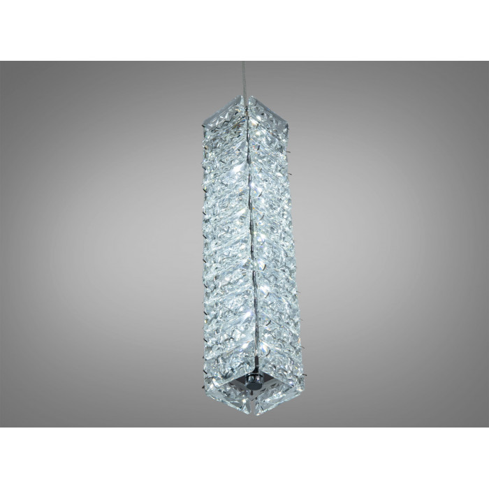 Світлодіодний кришталевий підвіс у кольорі золото, 12 Вт — це одинарний LED-світильник циліндричної форми з металевим каркасом і кришталевими елементами. Конструкція передбачає стельове кріплення та живлення від мережі, керування здійснюється звичайним настінним вимикачем. Такий формат підходить для акцентного й зонального освітлення, а теплий відтінок відблисків кришталю створює візуально затишну атмосферу.