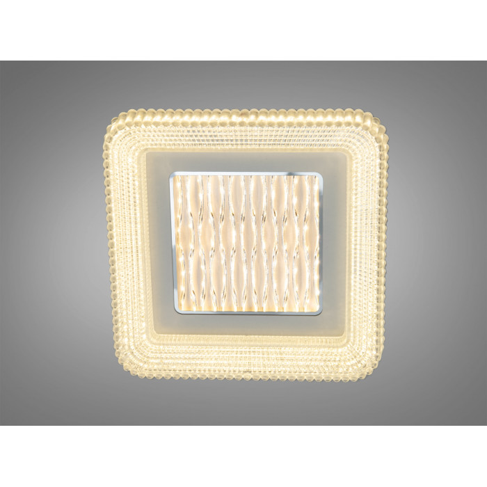Світильник має пласку форму з матовою розсіювальною панеллю, яка пом’якшує світловий потік. На лицьовій частині помітний хвилястий візерунок, а по периметру — прозорі акрилові краї, що створюють приємне світлове обрамлення. Нейтральний білий корпус легко поєднується з сучасними інтер’єрами: від мінімалізму та сканди до лофту з акцентом на простих геометріях.