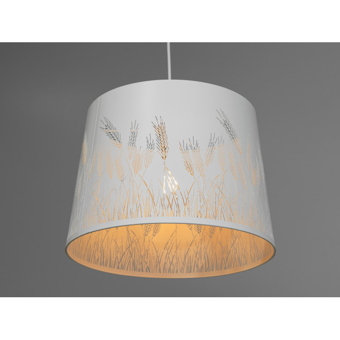Тематична люстра "Поле" (світильник-підвіс) з колекції "Люстра місто" - це справжнє втілення українського колориту у сучасному стилі лофт. Виготовлена з високоякісних матеріалів, вона забезпечує неповторне освітлення, де світло проникає крізь прорізи, що формують мальовничі зображення золотистих колосків пшениці. Ця люстра не тільки розсіює світло, але й створює враження золотистих пшеничних полів, освітлених сонцем. У цій серії також представлені люстри з іншими мотивами, такими як таємничий ліс чи сучасні геометричні візерунки, але "Поле" унікальне своїм зв'язком з українською землею та культурою.
