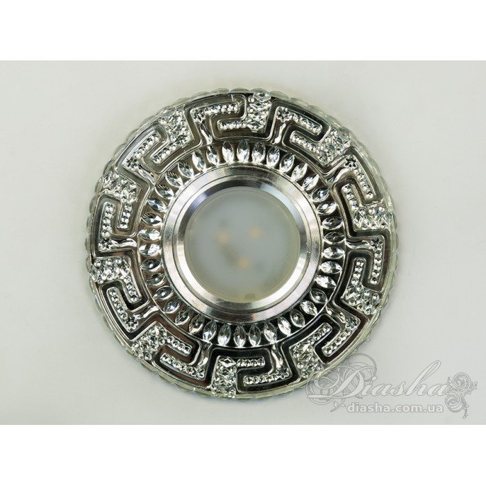 Врізка виконана з акрилової смоли, яка не поступається за своїми декоративними властивостями кришталю - на стелі ви побачите красиві промінчики світла.