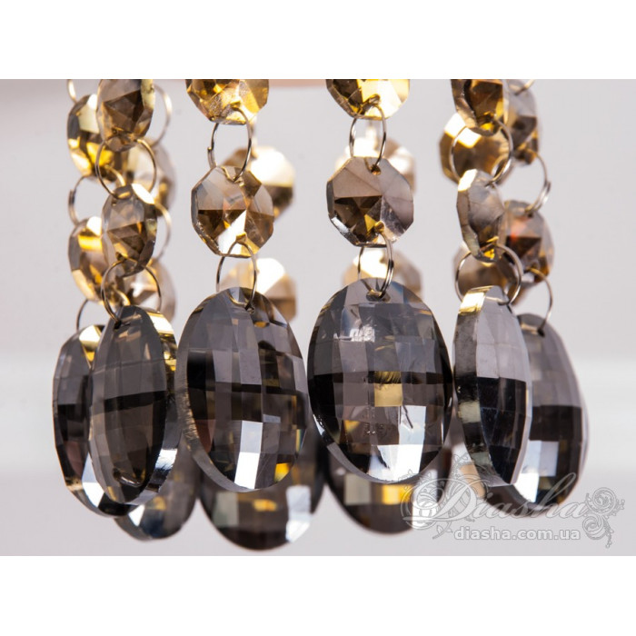 Ці маленькі шестигранні підвіси слугують не лише декоративним елементом, але й функціональною частиною. Вони створюють градацію висоти, а до їхніх кінців підвішені великі кришталеві краплі, що нагадують про дорогоцінні каплі роси. Такий елементарний, але вишуканий дизайн додає світильнику витонченості та природності.