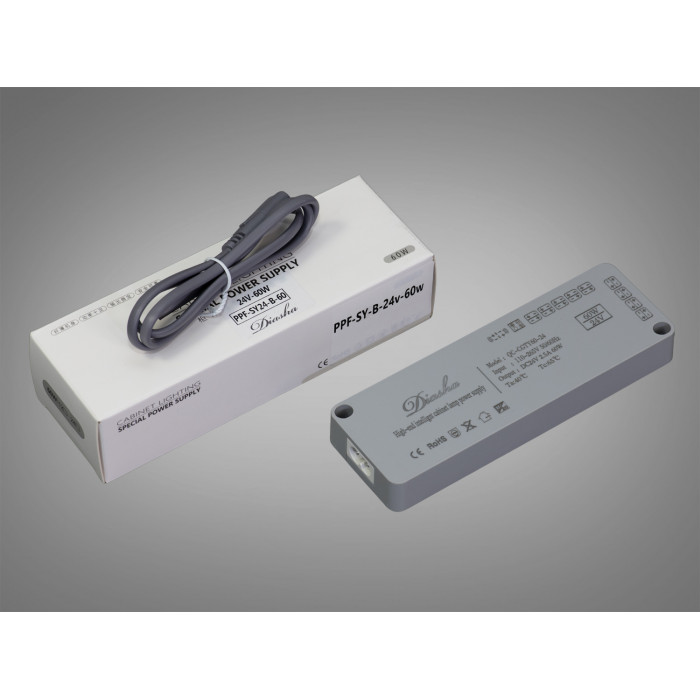 Якщо ви шукаєте потужне, розумне та зручне рішення для підсвітки меблів або технічних зон, модель PPF-SY-B-24V-60W стане ідеальним вибором. Цей тонкий блок живлення не тільки гарантує стабільну роботу світлодіодної стрічки чи світильників, а й підтримує підключення сенсорів керування, дозволяючи автоматизувати освітлення в будь-якому просторі.