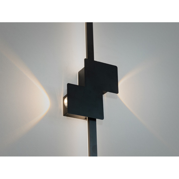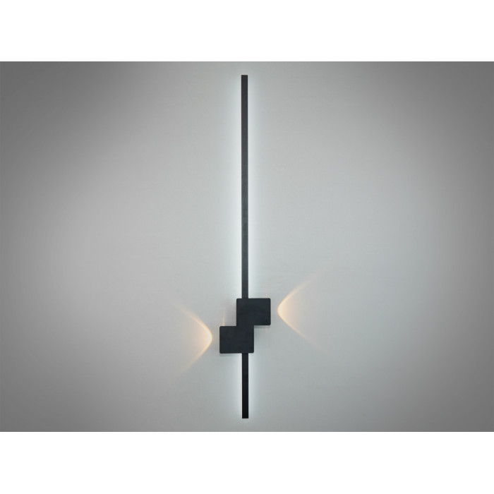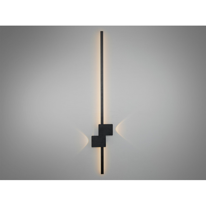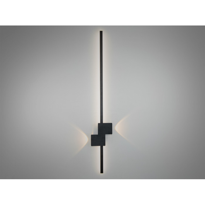 Цей настінний світильник вражає своїм мінімалістичним і водночас елегантним дизайном. Основу складає тонка вертикальна палка, яка плавно переходить у декоративний елемент із геометричних блоків. Лаконічний чорний колір корпусу додає світильнику стриманості та універсальності, дозволяючи йому гармонійно вписуватися в сучасні інтер'єри. LED підсвітка розташована позаду основної конструкції, створюючи м’який контурний ефект, який виглядає як гра світла і тіні. Завдяки своїй лінійності та витонченості, настінний лед світильник стає не лише джерелом світла, а й естетичним акцентом у приміщенні.