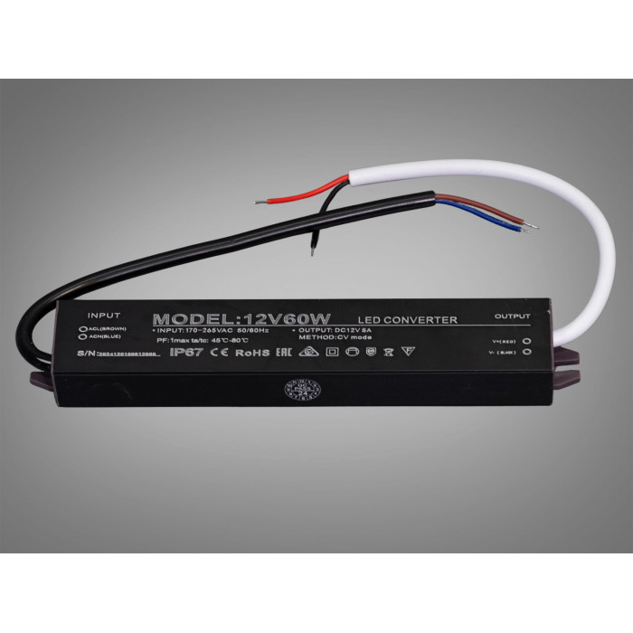 Адаптер живлення для світлодіодної стрічки 12 вольт 60 Вт ідеально підходить для реалізації декоративного освітлення середньої та високої інтенсивності. Компактний блок живлення для діодної підсвітки дозволяє використовувати пристрій навіть у місцях з обмеженим доступом, без втрати продуктивності. Світлодіодний блок живлення IP67 виготовлений відповідно до європейських стандартів безпеки (CE, RoHS), що гарантує безпечну експлуатацію.