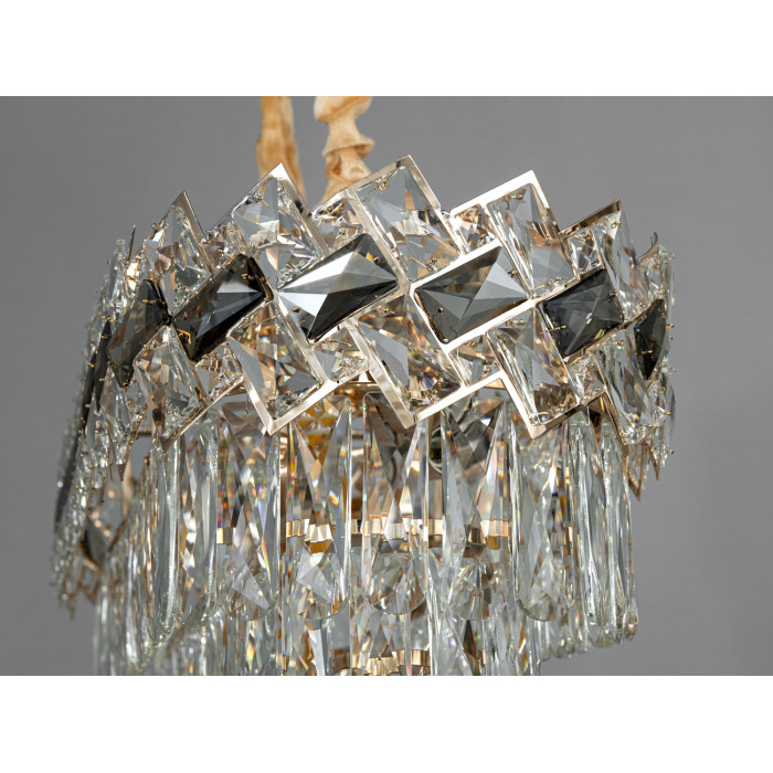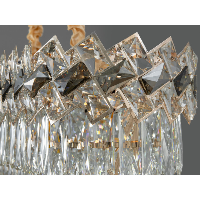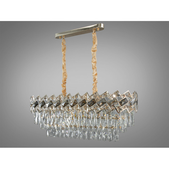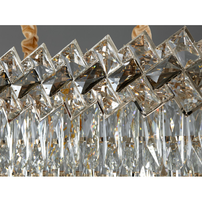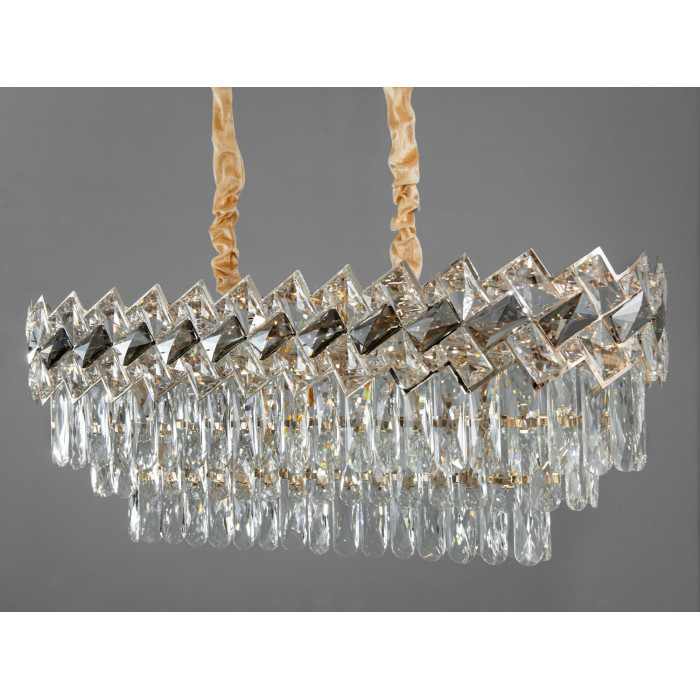 Овальна форма цієї люстри надає їй особливої грації та елегантності. Завдяки такій формі світильник рівномірно розсіює світло, створюючи приємну та затишну атмосферу у приміщенні. Кристали, що прикрашають цю люстру, відбивають світло, створюючи блискучий ефект, який додає вишуканості будь-якому інтер'єру. Крім того, овальна форма дозволяє ефективно використовувати люстру в різних приміщеннях, роблячи її універсальним елементом декору.