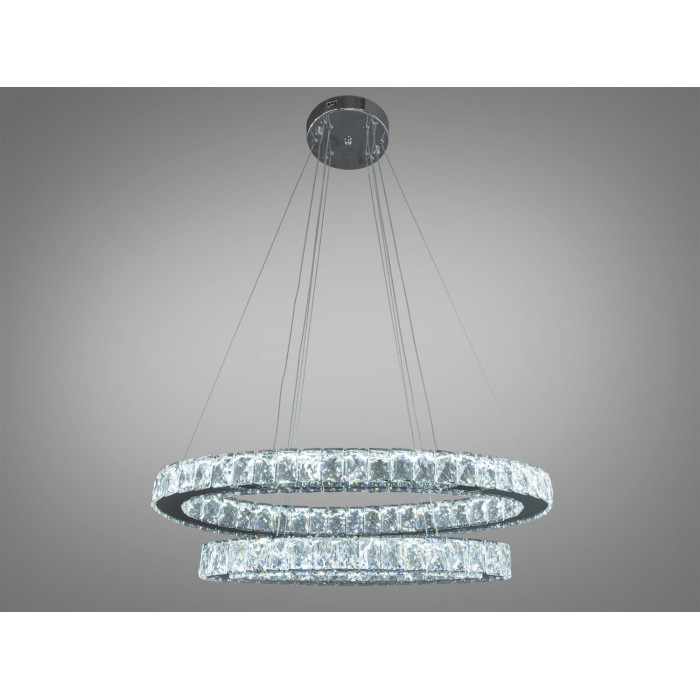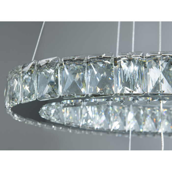 Перед вами – витончена та розкішна підвісна LED люстра кільця, яка здатна перетворити будь-який інтер'єр на справжнє царство світла та блиску. Ця люстра складається з двох великих кільцевих елементів, які гармонійно висять в паралельних просторах, створюючи елегантну композицію. Кожне кільце щедро інкрустоване кришталевими вставками, що створюють неймовірний ефект переливів та сяяння.