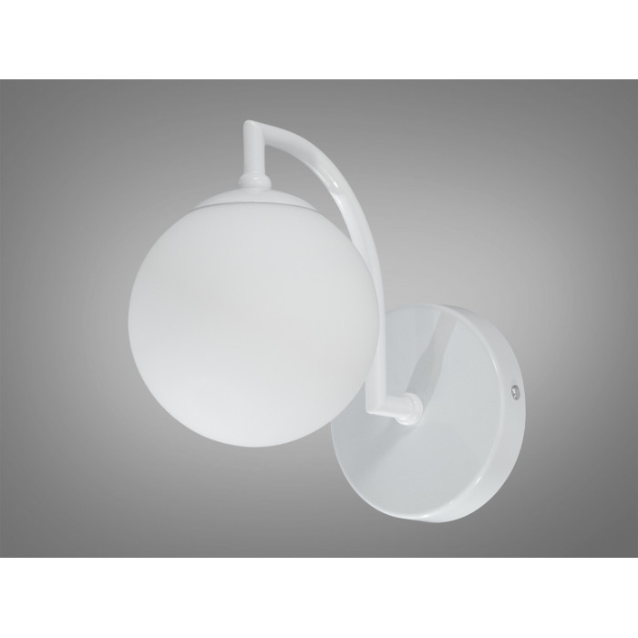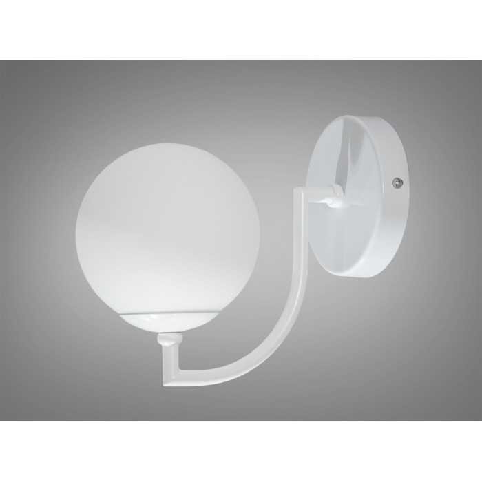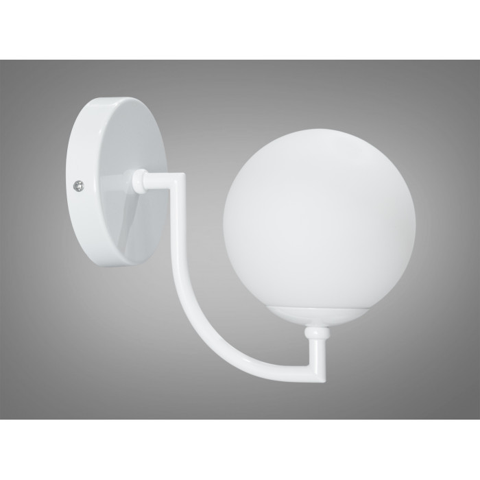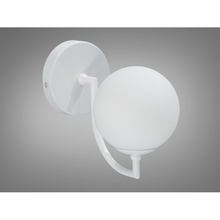 Абажур із матового скла розсіює світло до самого куточка, заряджаючи простір теплом та м'якістю, ідеальними для відновлення сил. Контраст між м'яким світінням та елегантністю білих елементів додає бра глибину та характер, який легко адаптується до будь-якого інтер'єру.