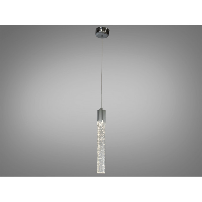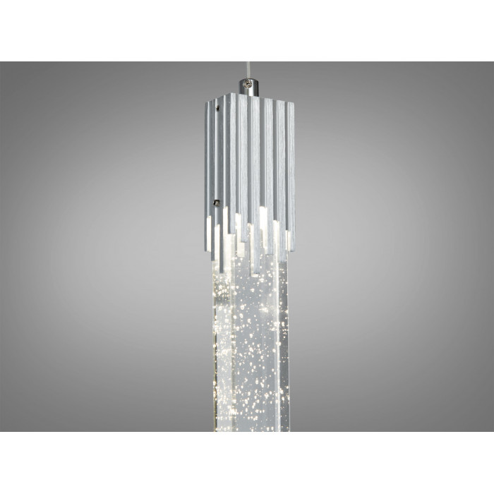 Акриловий розсіювач, який спускається донизу, створює враження плавучості світла, що злегка торкається поверхонь, на які воно падає. Це створює ідеальний баланс між природним освітленням та штучним, забезпечуючи достатній рівень яскравості без сліпучого ефекту. Естетика світильника підкреслюється тим, як світло інтерактивно грає з оточуючим простором, відбиваючись від глянцевих поверхонь та м'яко розсіюючись в темніших кутках кімнати.