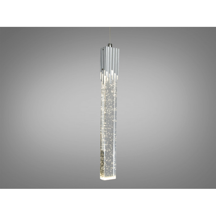Світильник складається з вузького вертикального прямокутного стовпчика, що нагадує сучасний художній об'єкт. Верхня частина світильника виконана з металу хромового відтінку, що додає елемент розкоші та теплоти, в той час як нижня частина представляє собою прозорий акриловий дифузор, що розсіює світло, створюючи м'яке та затишне освітлення.