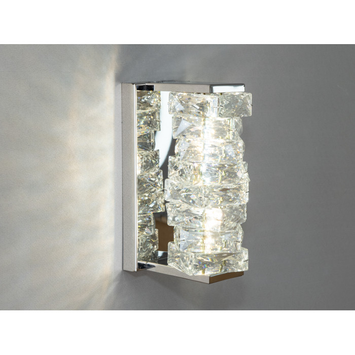 Настінні бра для інтер’єру часто стають акцентними елементами дизайну, і цей кришталевий світильник з хромованим оздобленням чудово справляється з цією роллю. Його сучасний вигляд підходить для освітлення вітальні, де він може стати центральним декоративним елементом.