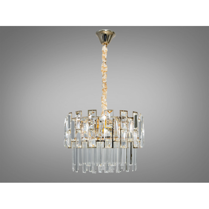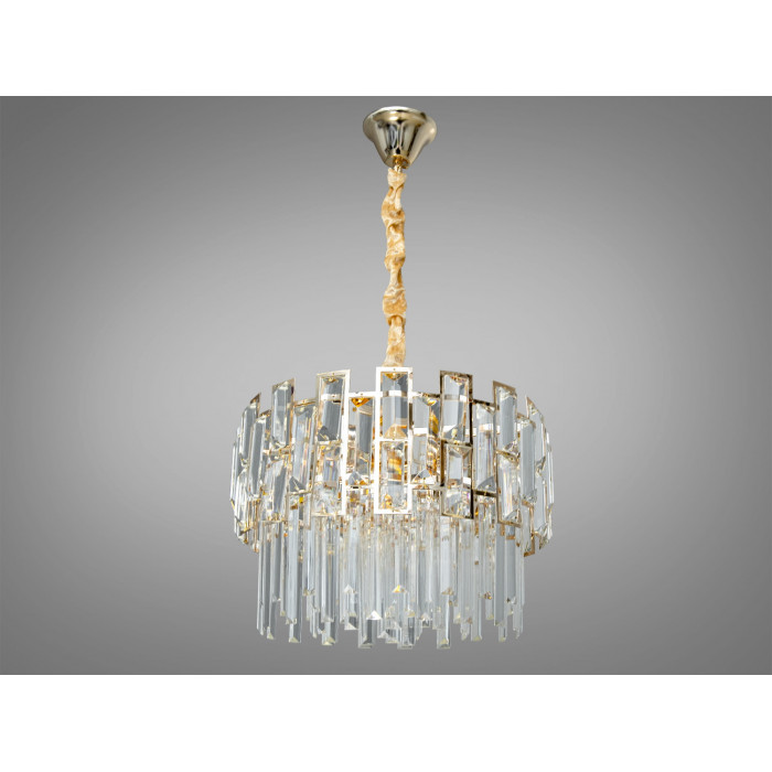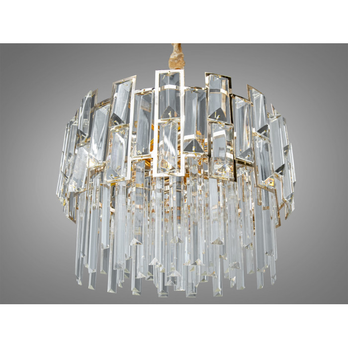 Кожен кришталь відшліфований до досконалості, щоб максимально відбивати та розсіювати світло, створюючи мерехтливий ефект, який відразу привертає увагу та створює в приміщенні атмосферу розкоші. Золоті елементи додають сучасного акценту, відображаючи світло та підсилюючи ефект від кришталів.
