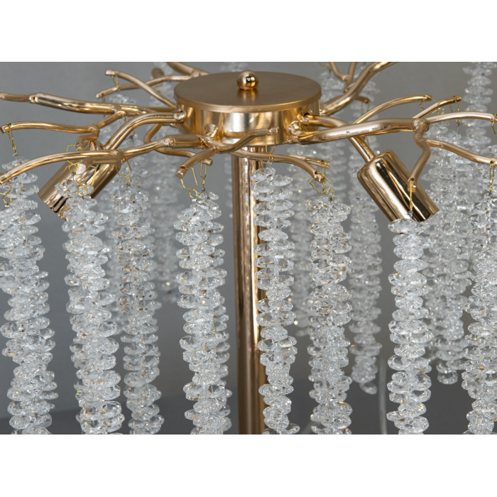 Стильна настільна лампа - справжній шедевр дизайну, який поєднує елегантність, сучасність і функціональність. Вона виглядає, ніби витвір мистецтва, створений із натхненням природою. Центральна частина настільної лампи представлена у вигляді витонченої металевої основи, виконаної у розкішному золотистому кольорі. Від неї відходять вигнуті гілки, на яких розташовані білосніжні керамічні елементи, що нагадують ніжні пелюстки. Такий дизайн робить світильник не просто джерелом світла, а справжньою окрасою інтер′єру.
