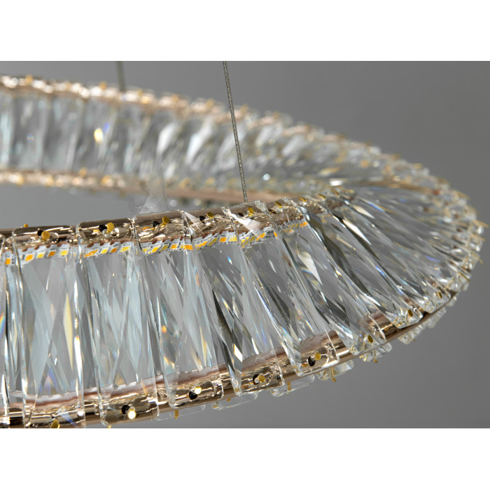 Завдяки своїй потужності в 72 Вт, ця кришталева світлодіодна люстра здатна яскраво освітлювати великі залі, вносячи в інтер'єр нотки сучасного арт-деко. У той же час вона може бути ідеальним рішенням для освітлення кухні, особливо коли розташована над столом, де кожна вечеря може стати особливою подією завдяки неповторному освітленню.