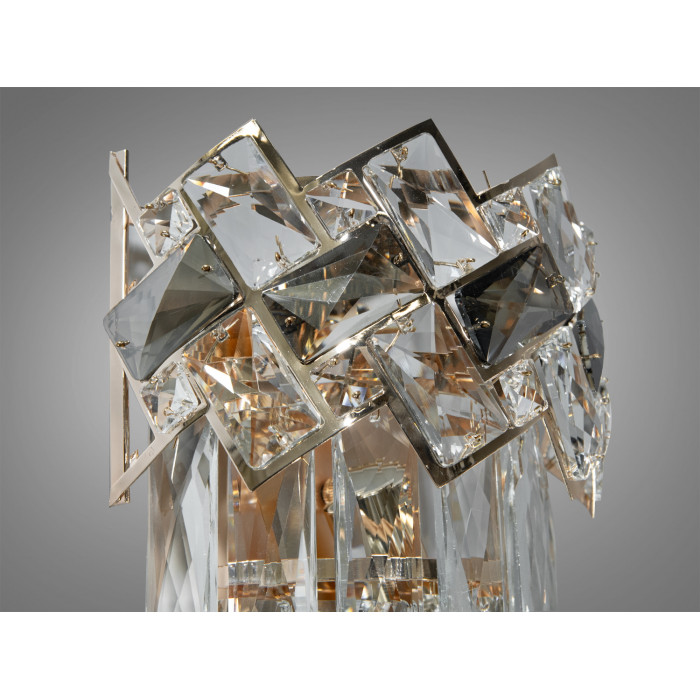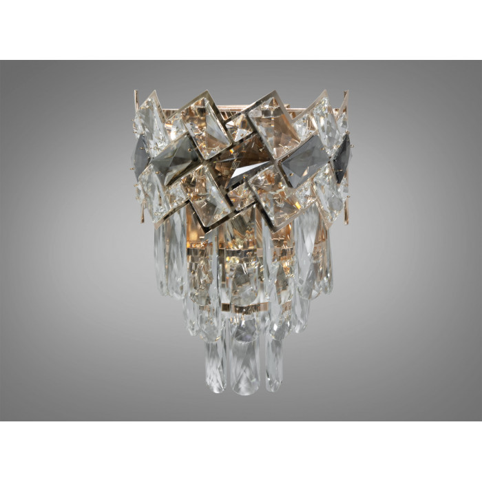 Кришталь, що використовується в цьому бра, зібраний у складні геометричні форми, створюючи ефект калейдоскопа, коли світло відбивається та переломлюється в його гранях. Ця гра світла та тіні додає глибину та багатогранність простору, де бра встановлено.