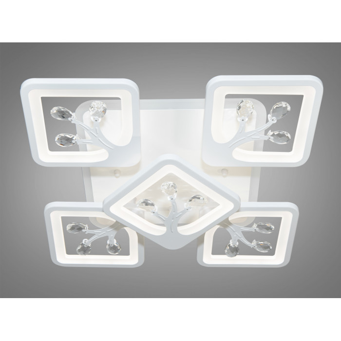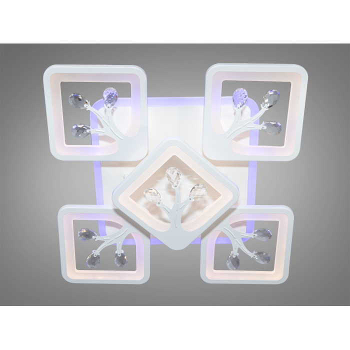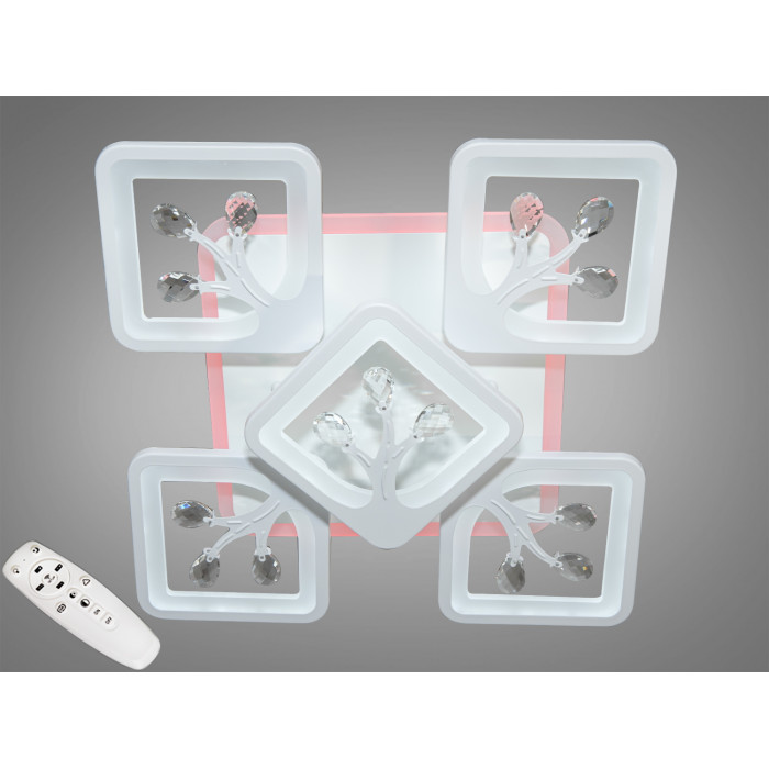 Вишукана, технологічна новинка, стельова світлодіодна люстра ТМ "Діаша" 90 Вт – це поєднання сучасної елегантності та функціональності, створена для справжніх цінителів дизайну. Кожен квадратний плафон лед люстри із металу та литого акрилу, оздоблений вишуканими кришталевими елементами, не лише розсіює світло, а й відображає його, створюючи в приміщенні атмосферу розкоші та стилю. Плавні лінії і м'яке освітлення додають простору затишку та комфорту, роблячи люстру ідеальним вибором для створення чудового настрою.