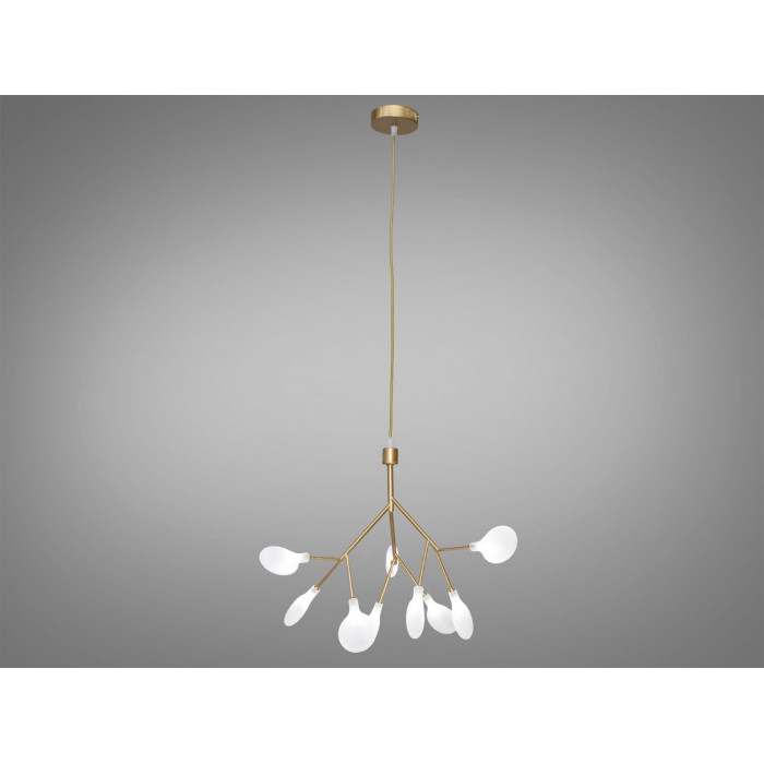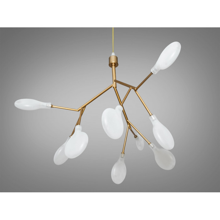Витончена люстра підвіс "Світлячок" від ТМ «Діаша» – це ідеальне поєднання мінімалізму, природних мотивів та сучасного стилю. Її тонкий золотий каркас нагадує гілку дерева, що розпускається в момент весняного пробудження, а дев’ять матових плафонів надають світлу ніжність та м’якість.