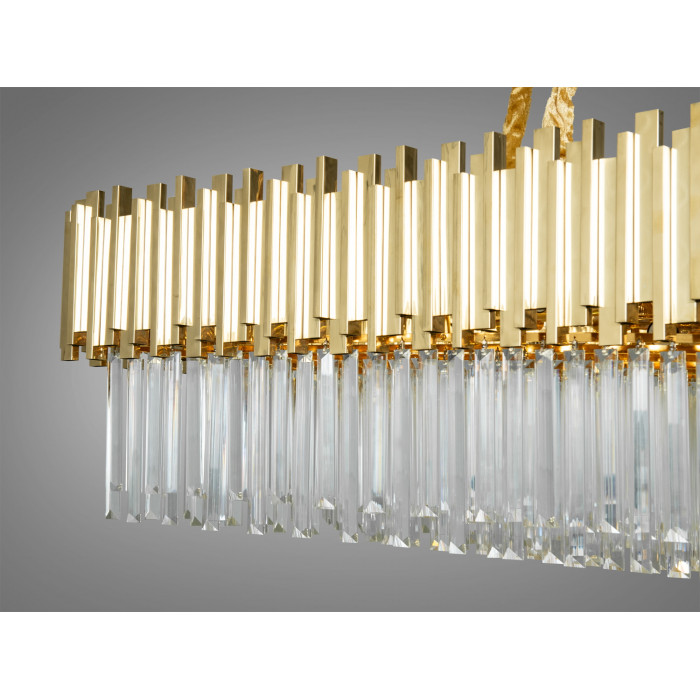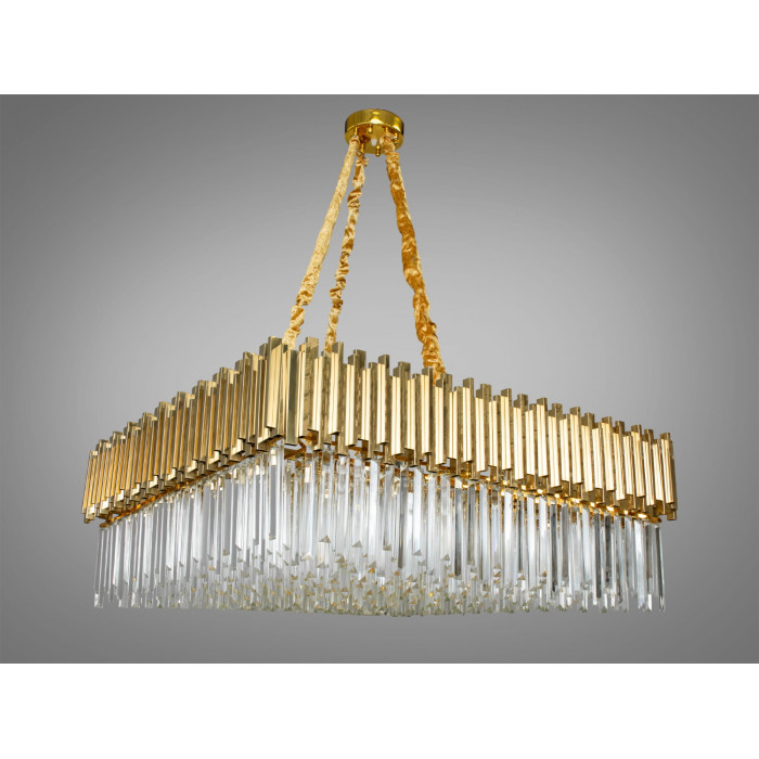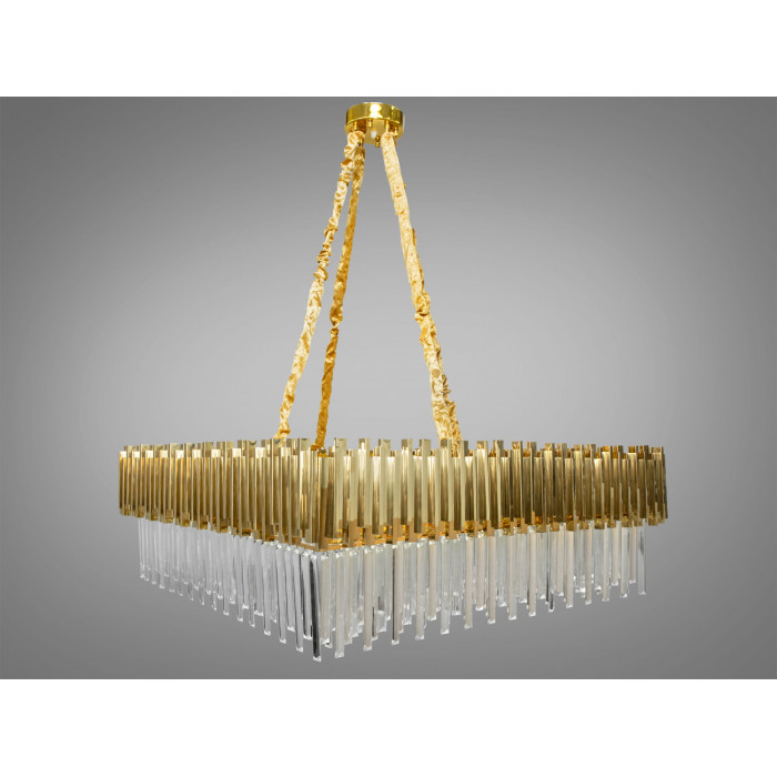Сучасна кришталева люстра квадратної форми від ТМ «Діаша», що є справжнім втіленням розкоші та сучасного дизайну. Сяюча золотистим відливом, вона стане незаперечним акцентом будь-якого залу, де традиції зустрічаються з інноваціями, а класика переплітається з модерном.