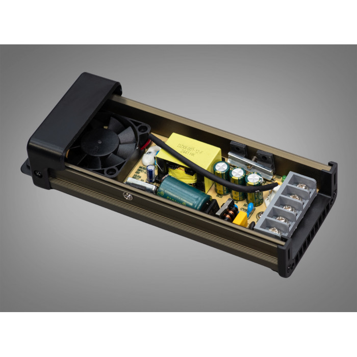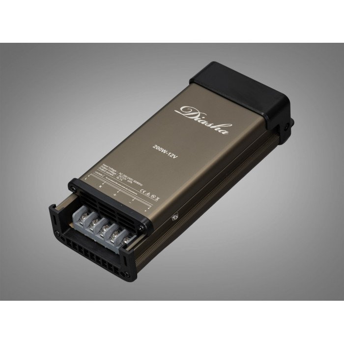 Вуличний блок живлення PPF-PW-IP54-12V-200W від ТМ "Diasha" миттєво вражає потужністю та інженерною продуманістю. Його корпус із анодованого алюмінію виглядає надійно й презентабельно, а вбудований вентилятор забезпечує ефективне охолодження навіть при інтенсивній експлуатації. Строгі форми та надійна конструкція підкреслюють його професійне призначення для найвідповідальніших освітлювальних завдань.