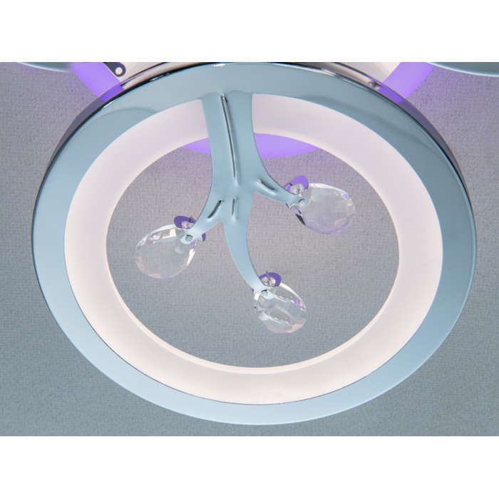 Ця модель лед люстри з пультом оснащена димером, що дозволяє налаштовувати рівень яскравості світла під ваші потреби — від ніжного м′якого до інтенсивного яскравого освітлення. LED підсвітка додає можливість створення кольорових акцентів, що ідеально підходить для створення святкової або романтичної атмосфери. Завдяки пульту дистанційного керування, ви можете змінювати налаштування освітлення з будь-якого місця у кімнаті.